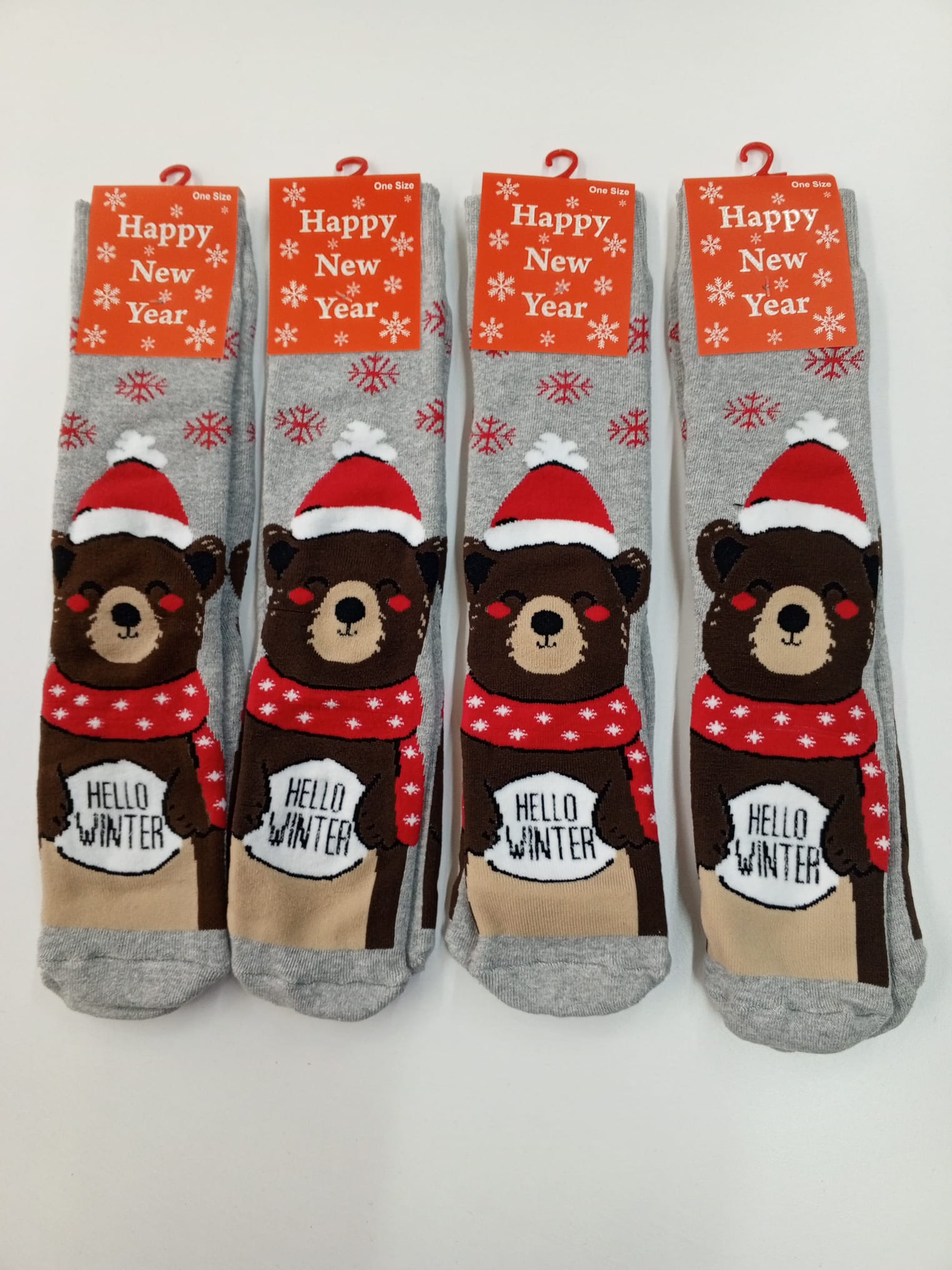 Καλτσα christmas hello winter .Με υπεροχη χριστουγεννιατικη παρασταση.Μαλακο λαστιχο και ενισχυμενη ραφη στη μυτη.Με επενδυση πετσετε κραταει τα ποδια ζεστα και μαλακα.