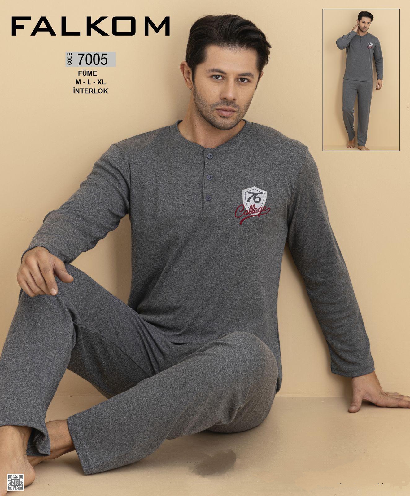 Η νέα ανδρική πιτζάμα σε ανθρακί τόνους συνδυάζει διακριτική κομψότητα και απόλυτη άνεση. Η μπλούζα διαθέτει πατιλέτα με κουμπιά και διακριτικό κέντημα στο στήθος, προσθέτοντας μοντέρνα λεπτομέρεια στο κλασικό σχέδιο. Το παντελόνι σε ανθρακί χρώμα ολοκληρώνει το σετ, προσφέροντας χαλαρή εφαρμογή με ελαστική μέση.